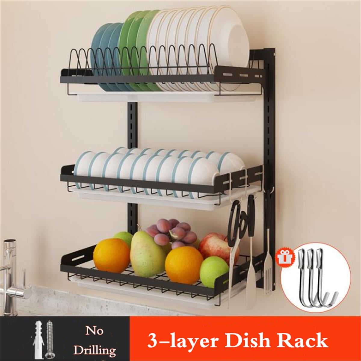 The trick is to put glassware on the top. Get the best deal for stainless steel kitchen racks and holders from the largest online selection at ebay.com. Mxiong 3 tier black kitchen dish rack drying dish organizer storage shelf 5ml, size 21h x 16w x 10d | wayfair wayfair0208a12. Dish drying rack, 2 tier dish rack stainless steel with utensil knife holder and cutting board holder dish drainer with removable drain board for kitchen this item is very large and does not fit underneath my cabinets. Stainless steel wall mount kitchen dish rack installation.